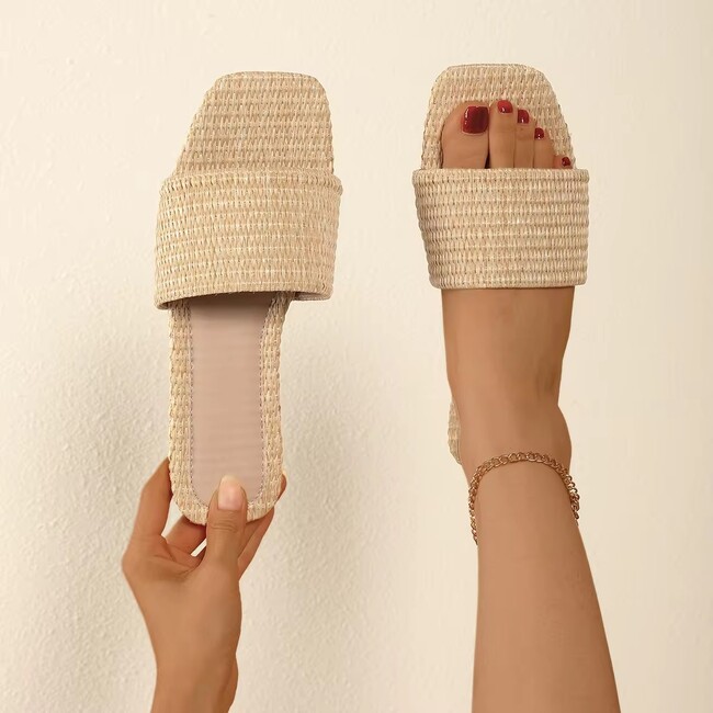 Womens Woven Straw Slippers